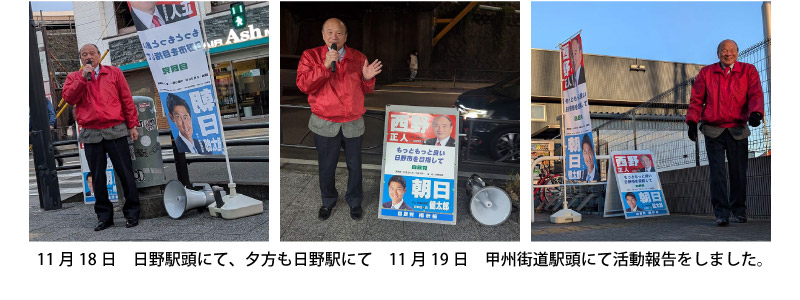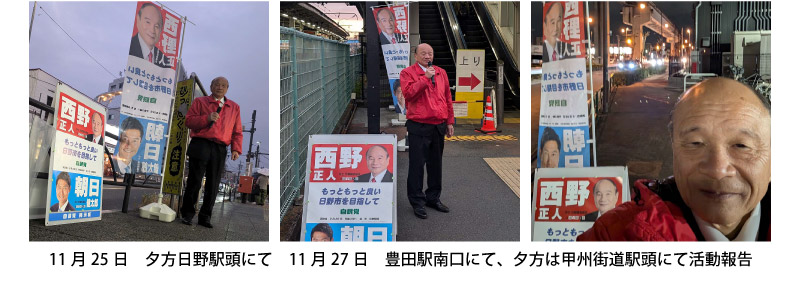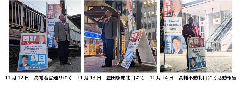 今、物価高などで一生懸命節約をしながら暮らしている市民も多くいます。今後の日野市の舵取りを行う市長ですので、しっかり任せられる市長を選ばなければなりません。市民の皆様に於かれましてはしっかり考えてご判断をお願いします。