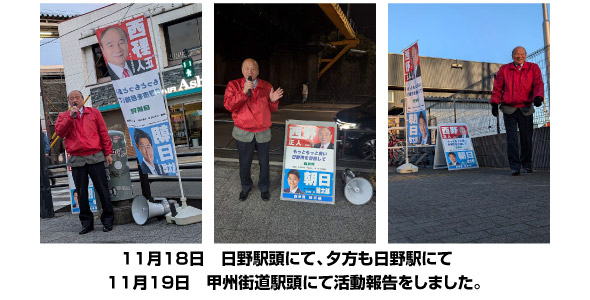 今、物価高などで一生懸命節約をしながら暮らしている市民も多くいます。今後の日野市の舵取りを行う市長ですので、しっかり任せられる市長を選ばなければなりません。市民の皆様に於かれましてはしっかり考えてご判断をお願いします。