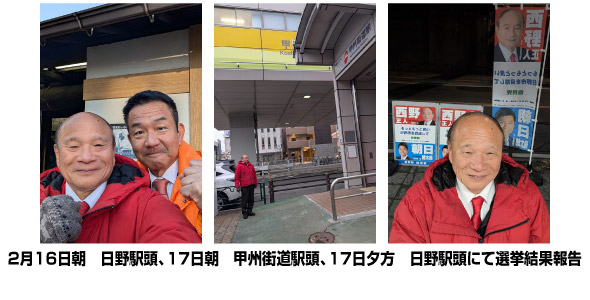 さて、1月27日告示2月8日投開票の衆議院選挙に続き2月8日公示15日投開票の日野市議会議員選挙と多忙極まる2月でした。衆議院選挙におきましては高市早苗総裁が率いる自民党が316議席を頂き圧勝し、東京都第21選挙区では小田原きよし候補が5期目の当選を果たし、見事衆議院議員に返り咲きました。これからの活躍に期待がかかるところです。