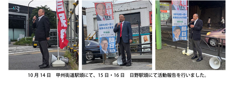 日野市は昨年10月に行われました衆議院議員選挙、4月の市長選挙また同日に行われた市議会議員補欠選挙、6月には私が立候補した都議会議員選挙(残念ながら惜敗)7月には参議院選挙と多くの選挙が行われ現在に至っています。来年の2月には日野市民に一番身近な日野市議会議員選挙が8日(日)告示15日(日)投開票にて行われます。現在、自民党からは公認候補として6名が立候補を予定しております。(前回自民党推薦にて当選をした現職は公認、推薦を受けないでの立候補と聞いています)