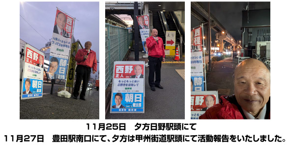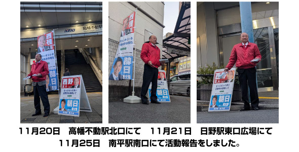 今、物価高などで一生懸命節約をしながら暮らしている市民も多くいます。今後の日野市の舵取りを行う市長ですので、しっかり任せられる市長を選ばなければなりません。市民の皆様に於かれましてはしっかり考えてご判断をお願いします。
